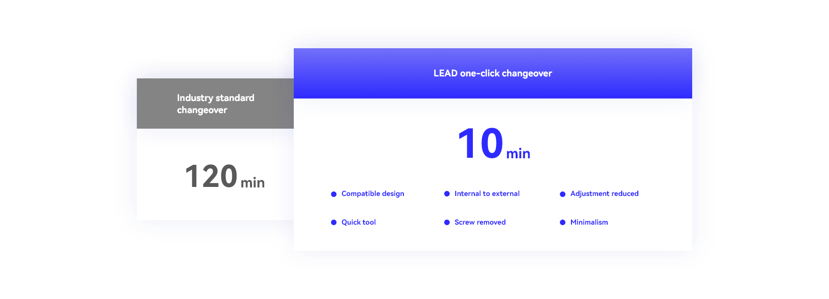 To meet the requirements of the market for prismatic cell assembly lines to have reduced changeover time, lower equipment operating costs, and higher levels of intelligence, LEAD’s prismatic cell assembly line solution has been continuously upgrading. It enables one-click changeover in 10 minutes and incorporates multiple innovative technologies to achieve energy saving and emission reduction. LEAD’s solution will significantly reduce the operating costs for customers and we strive to achieve a fully automated factory.